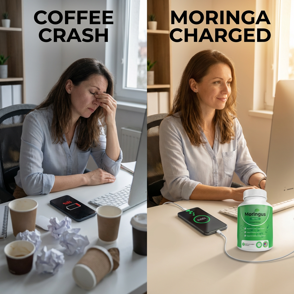 No. Moringa is non-stimulant — it won't spike your cortisol or mess with your sleep. It supports your body's natural energy production without the jitters, anxiety, or racing heart that caffeine causes.